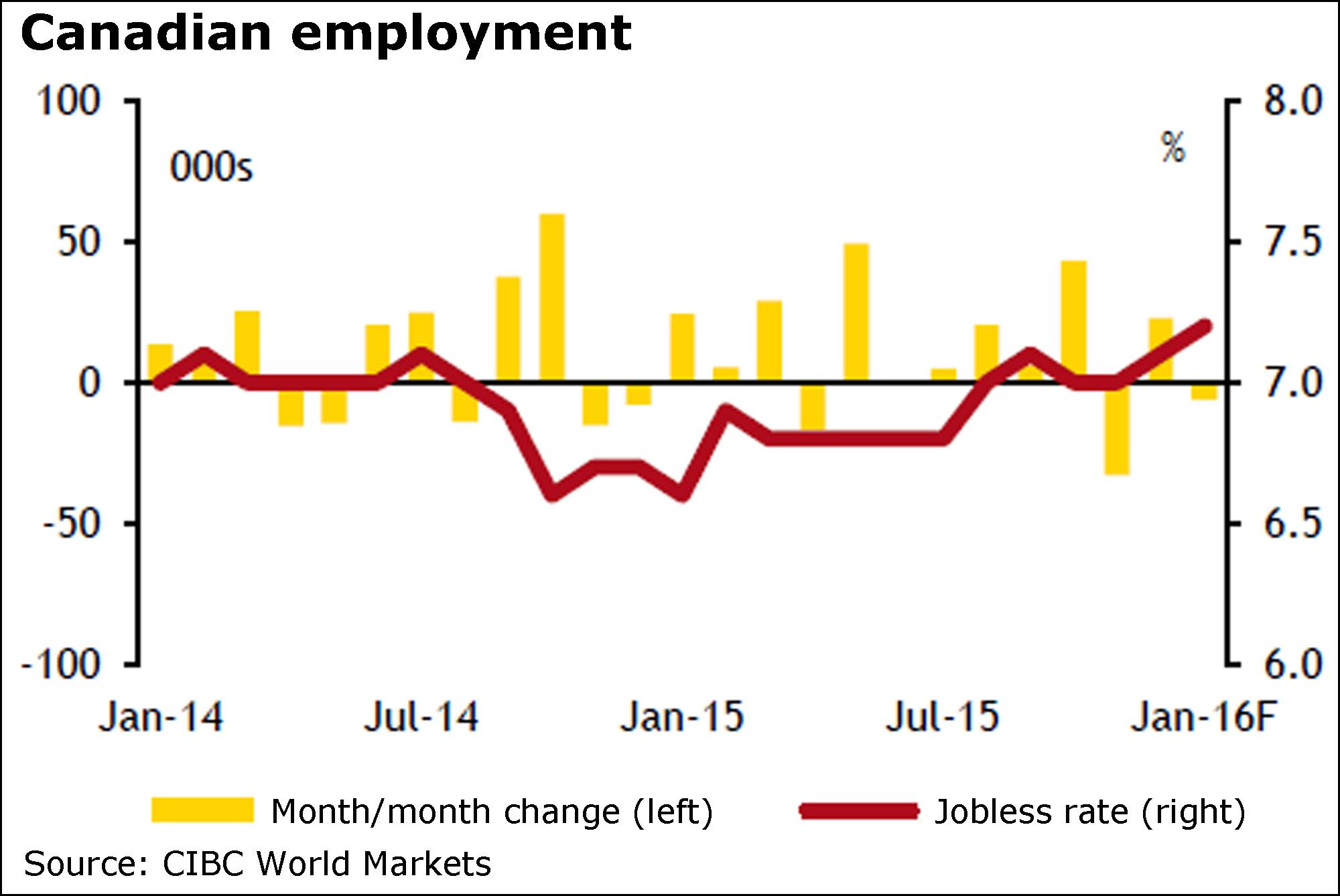 “Although the labour market held its ground in 2015 despite the challenges facing the domestic economy, it isn’t likely to fare as well this year,” said Nick Exarhos of CIBC World Markets.