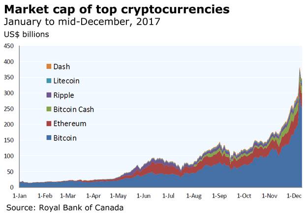 Consider the fact that, as Royal Bank of Canada documented, the value of cryptocurrencies surged in 2017 to hit almost $500-billion (U.S.) by mid-December, having started the year at about $18-billion.