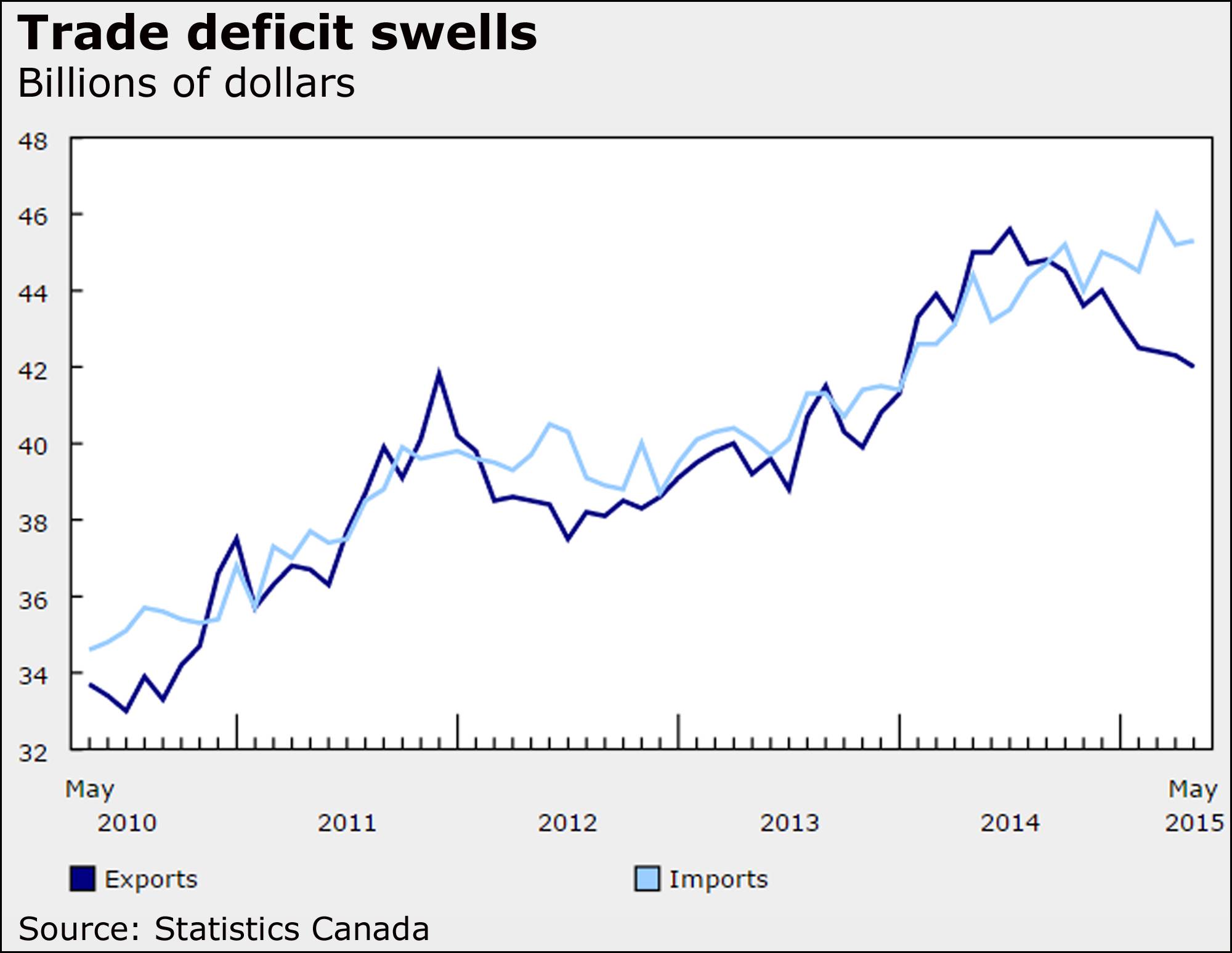 The May deficit widened from April’s $3-billion as imports inched up 0.2 per cent.