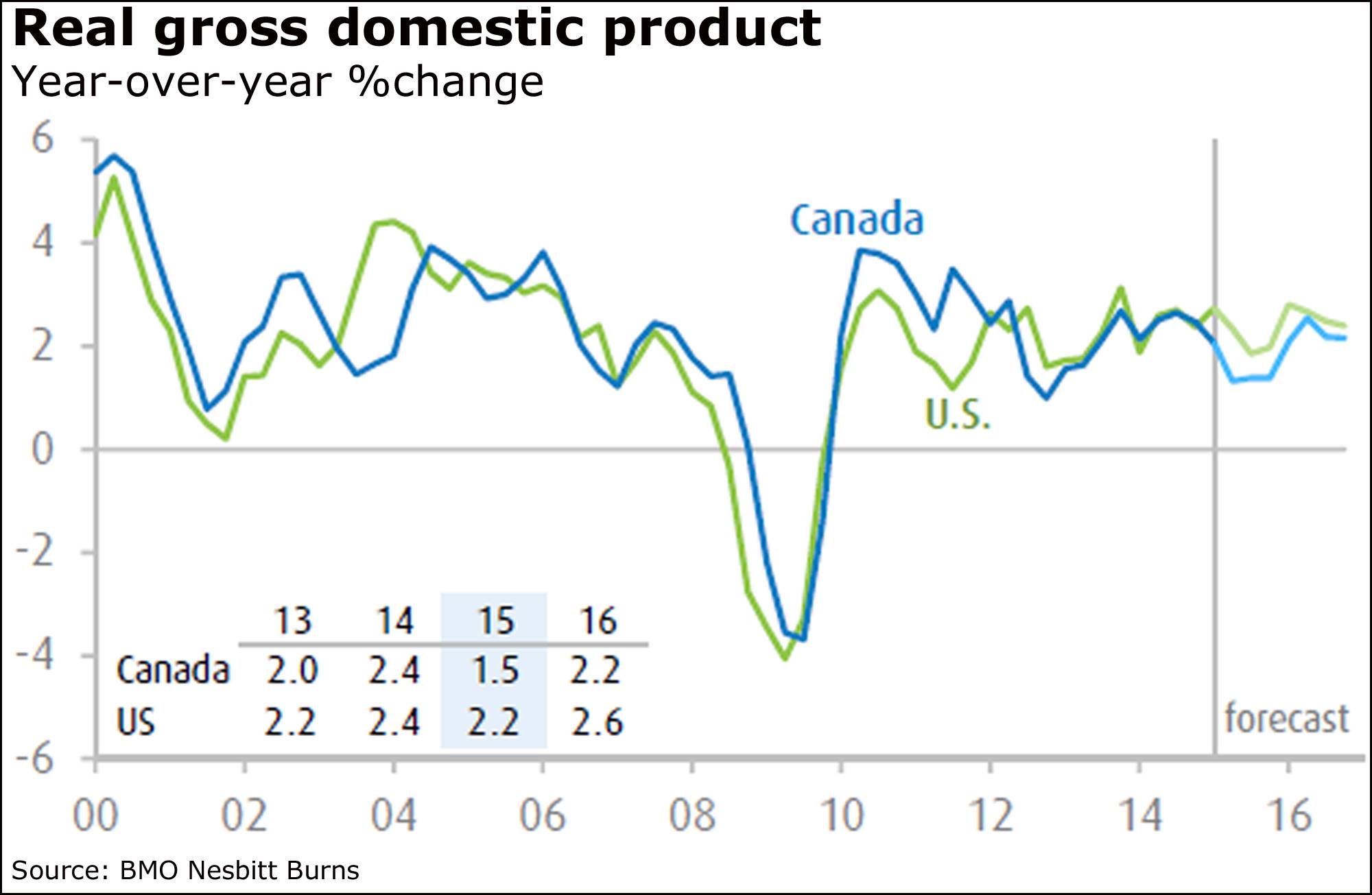 Canada’s economy shrank at an annual pace of 0.6 per cent in the first quarter, and BMO believes the second quarter will show a rebound of just 0.5 per cent.