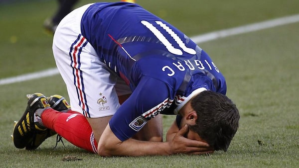 France's Andre-Pierre Gignac reacts during the World Cup Group A soccer match between France and South Africa at Free State Stadium in Bloemfontein, South Africa.Francois Mori/The Associated Press
