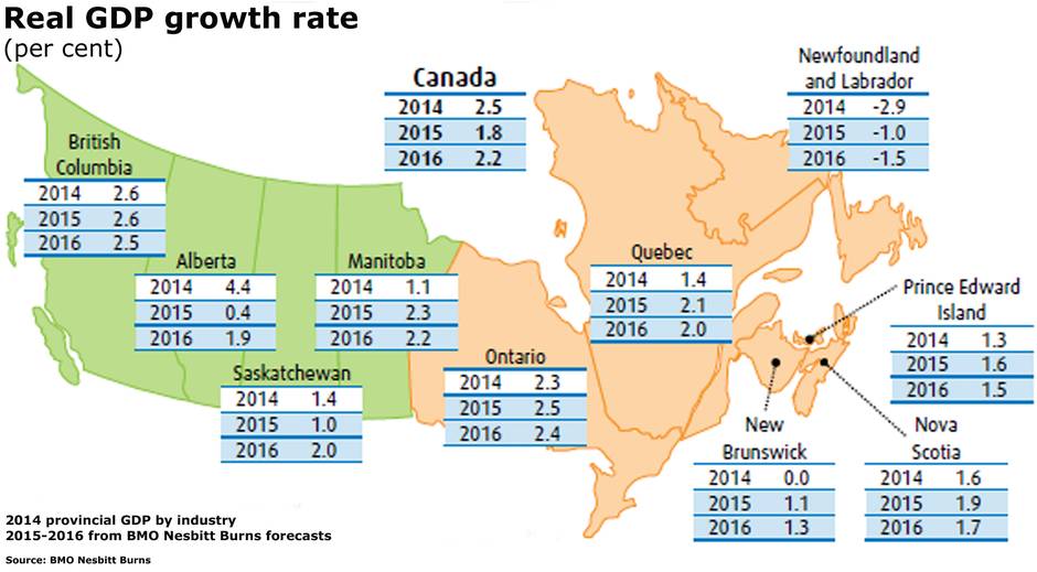 Mr. Kavcic also released forecasts of economic growth across the provinces that show the oil-sensitive regions taking it on the chin and British Columbia leading the country.
