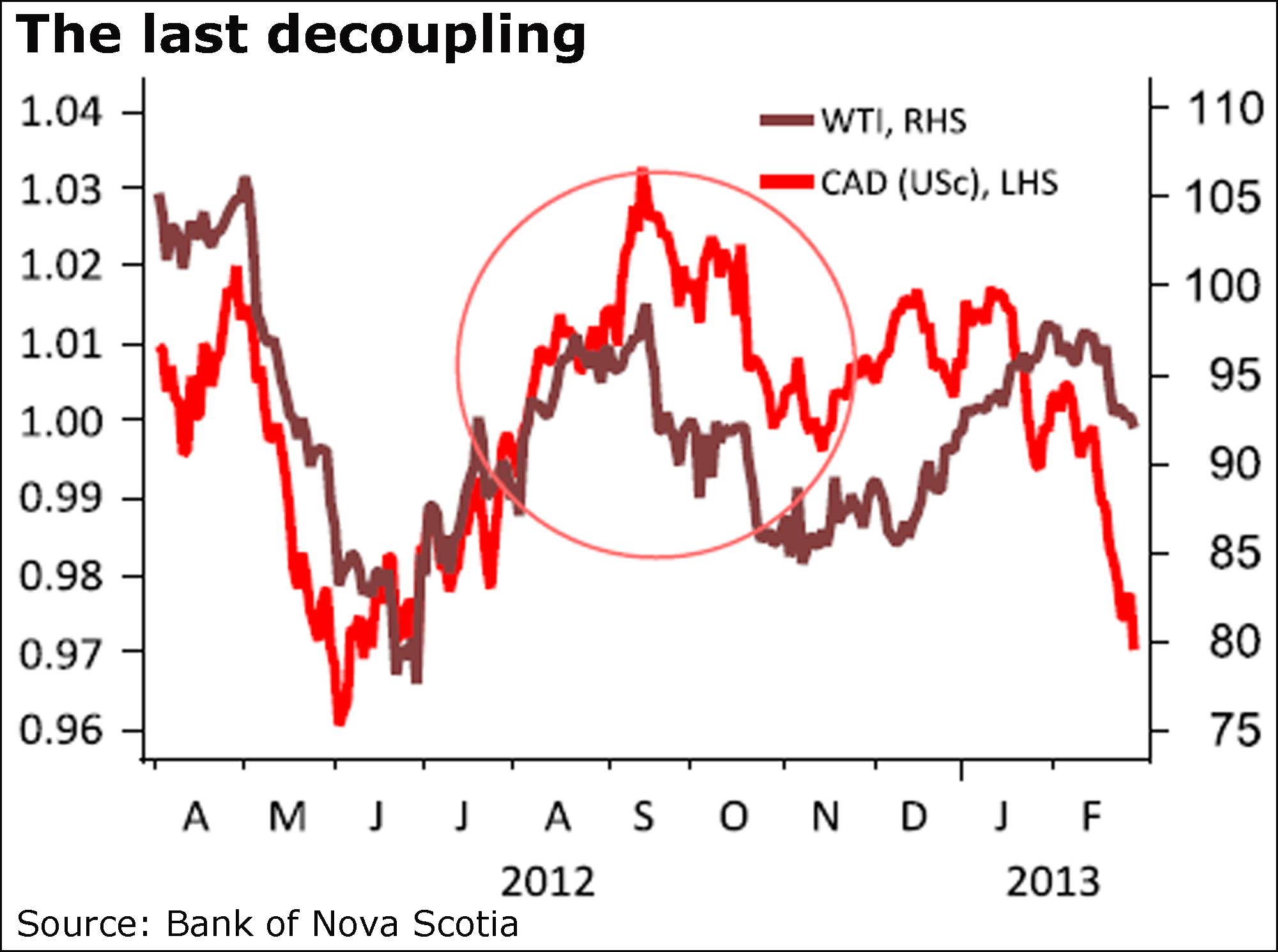 Currency analysts at Bank of Nova Scotia believe the Canadian dollar’s “petro-currency” status may be about to weaken.