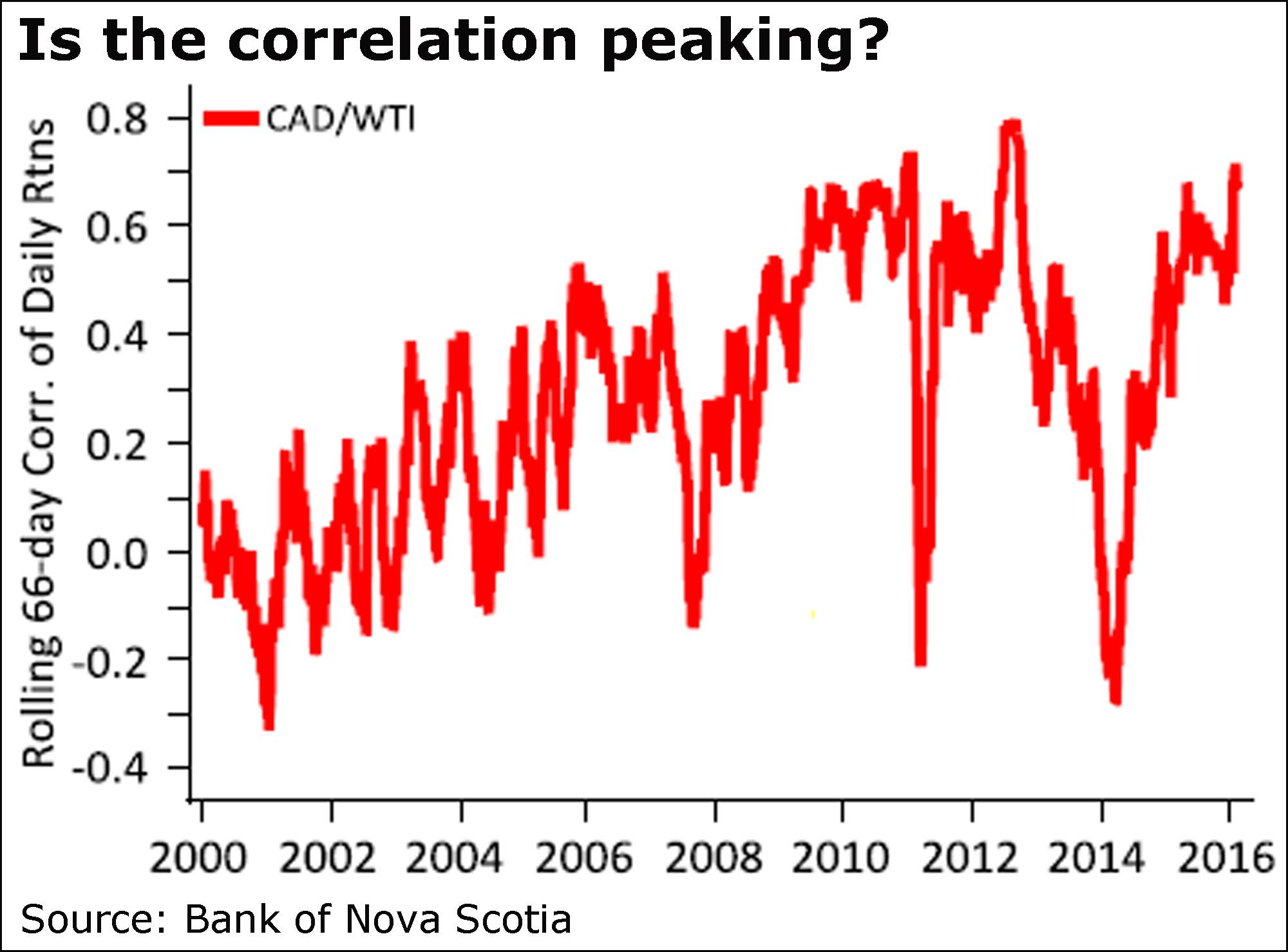 “The correlation between spot and crude prices has been tight but may be nearing a point where its influence on the CAD weakens to some extent,” they added.