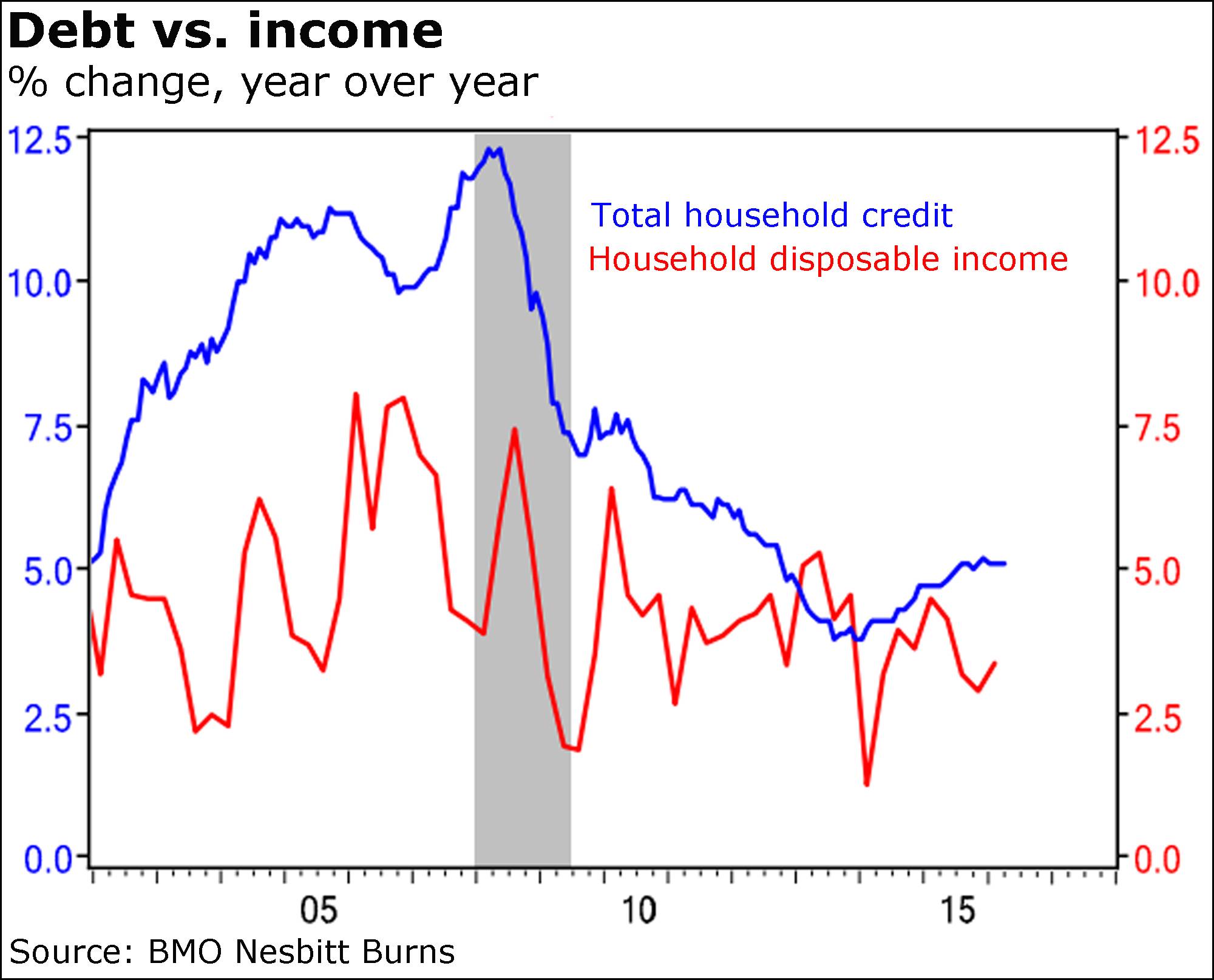 Indeed, compare those debt rates to the 3.4-per-cent annual pace of disposable income growth, as Mr. Porter did, and it’s no wonder that groups like the Organization for Economic Co-operation and Development are warning there could be trouble ahead.