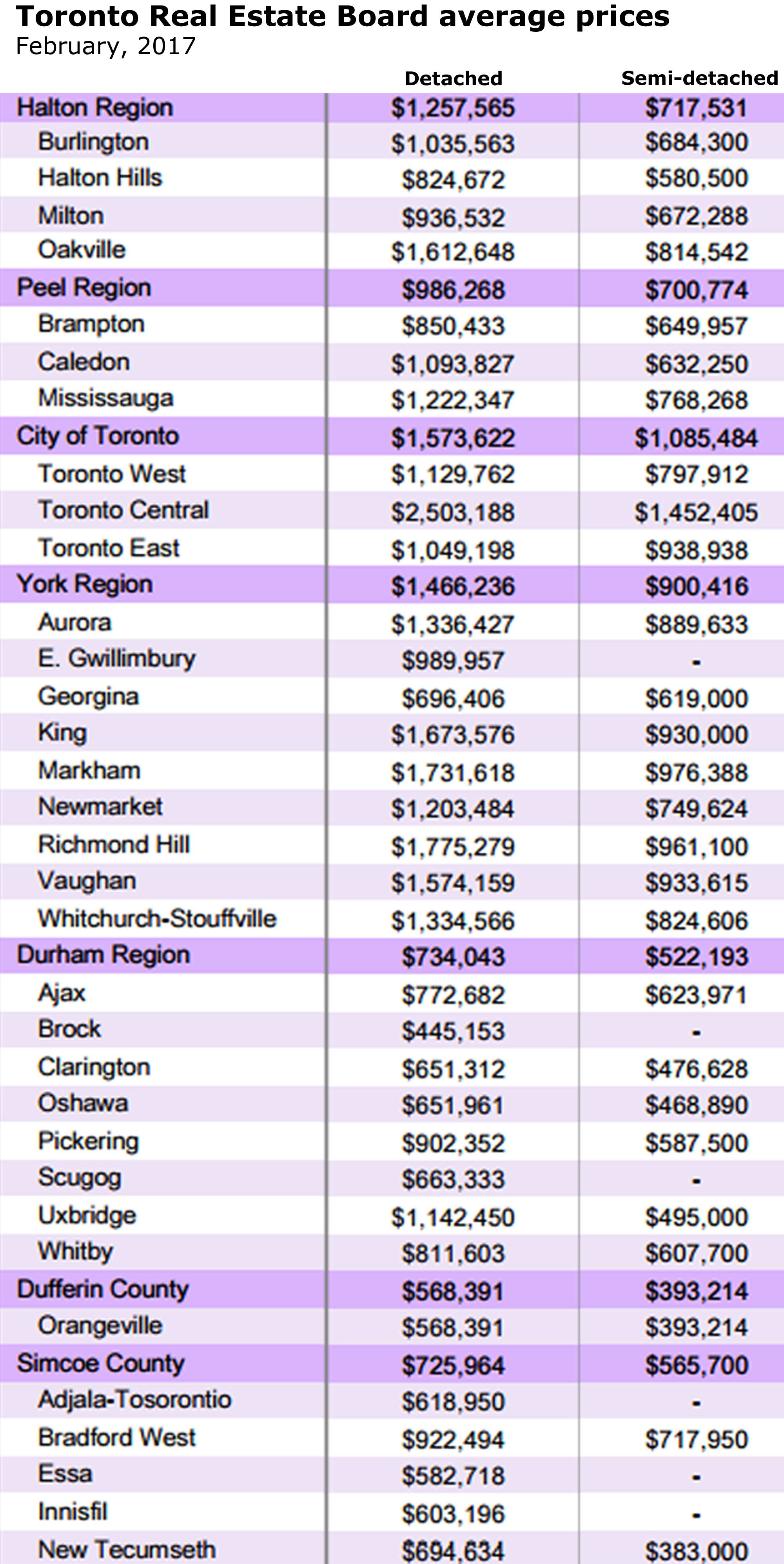 Of course, the latest numbers put the average price of a detached house in Toronto’s core 416 area code at almost $1.6-million. And in the 905 areas, it still tops $1.1-million. Even a semi in the core now goes for more than $1-million.
