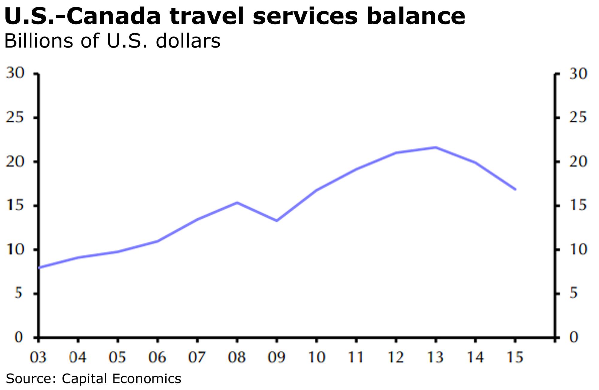 “It’s notable that the U.S. also runs a big surplus with Canada in travel services, with Canadian snowbirds and other visitors spending far more in the U.S. than Americans coming the other way.”