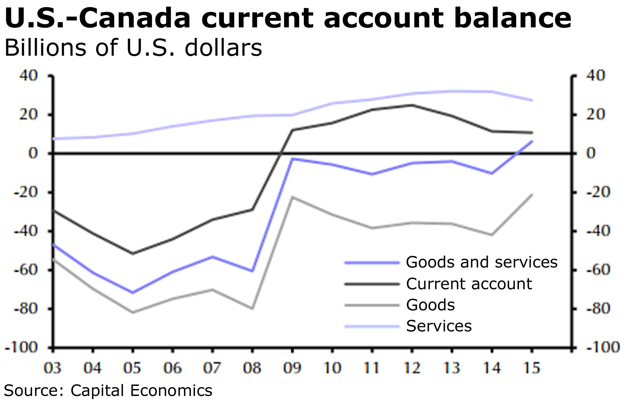 “The U.S. ran a modest current account surplus with Canada, worth 0.1 per cent of U.S. GDP in 2015,” he added.