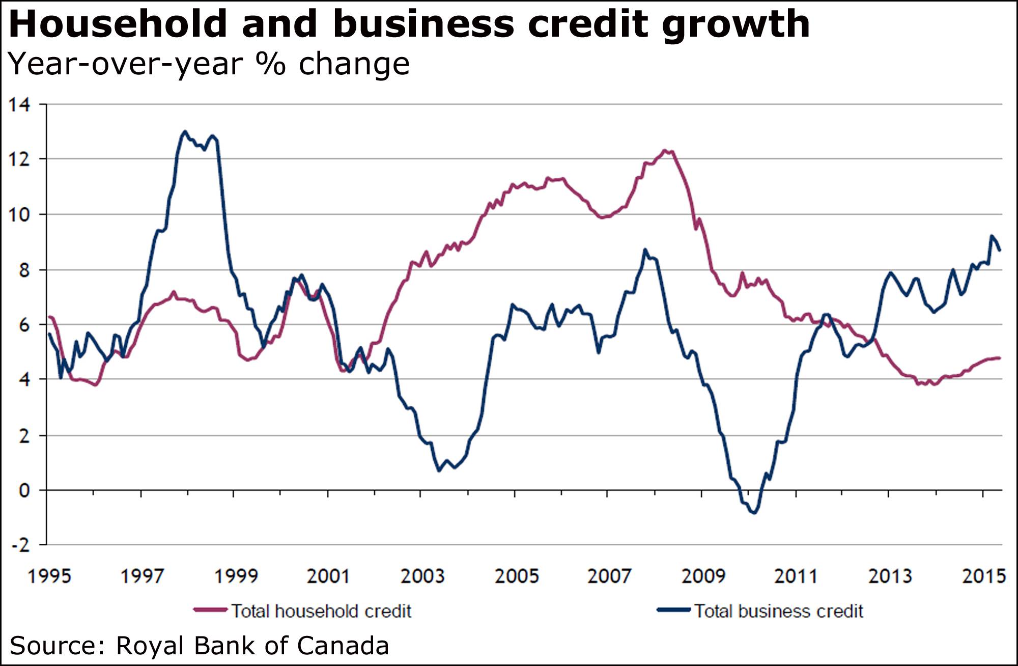 Household credit climbed 4.8 per cent in May from a year earlier, with mortgages up 5.5 per cent.
