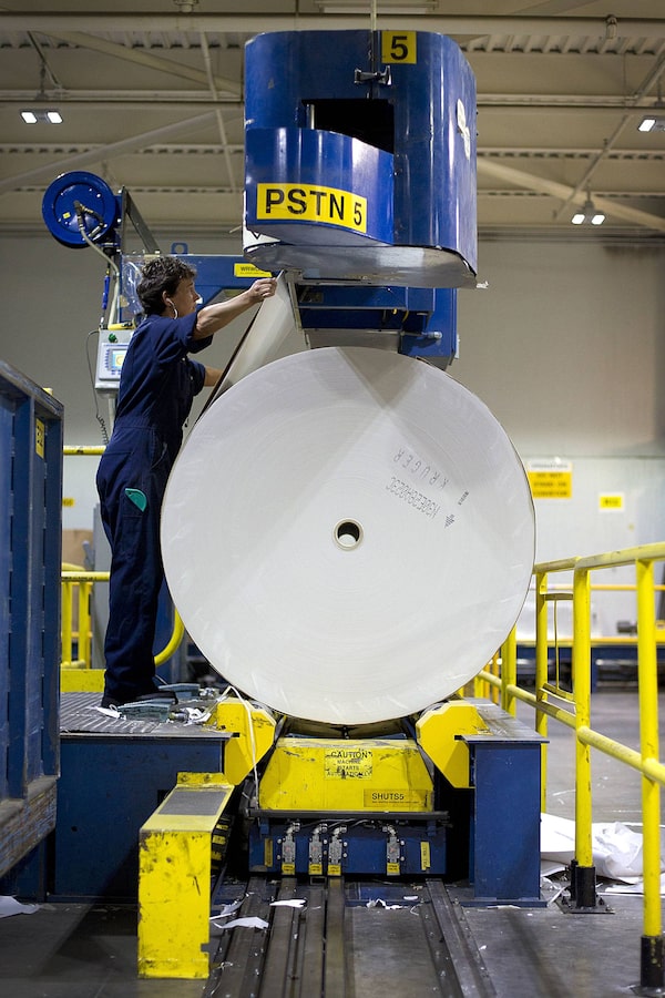 An employee opens a fresh roll of newsprint paper at the Toronto Star printing plant on Wednesday, July 6, 2011. The newspaper company is expected to announce on Friday that it intends to close the Vaughan, Ont. printing plant.Brent Lewin/Bloomberg