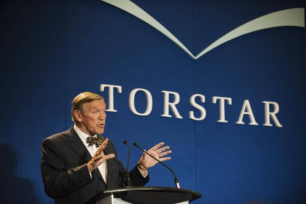 Chair of the board of Torstar John Honderich speaks to shareholders at their annual general meeting in Toronto on May 7, 2014.Aaron Vincent Elkaim/The Canadian Press
