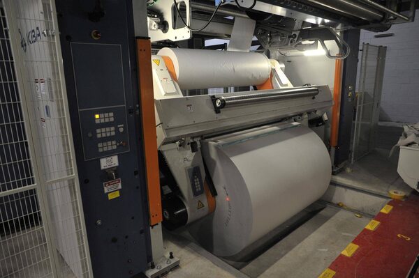 Paper on rollers about to be fed into the presses at the Transcontinental plant.