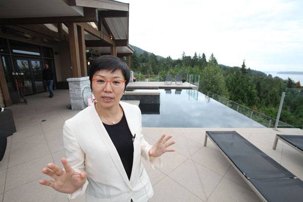 Qiqi Hong walks past her sleek, blue-tiled hot tub and an infinity pool that seems to disappear like a waterfall into the chilly air above West Vancouver. She leans on the patio railing and breathes in the majestic ocean view that takes in the towering Douglas firs of Stanley Park, the skyscrapers of Vancouver, the Asia-bound freighters anchored in English Bay and – way off in the misty distance – the faint, rugged outline of Gabriola Island.