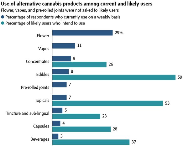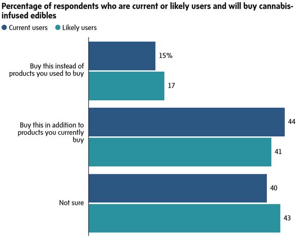 One of the concerns around “cannabis 2.0” is that consumers will switch their preferences away from the already legal cannabis products. But Deloitte says their research isn’t showing this – at least not yet. “Fewer than one in five current or likely respondents say their edible spending would replace spending on other products. Nearly half say they’ll buy edibles as well as the products they’re already buying ... This suggests that Canada’s domestic cannabis market has room to grow.”