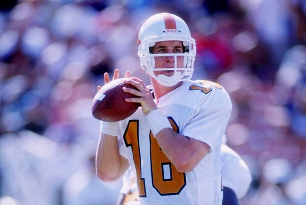 Quarterback Peyton Manning of the Tennessee Volunteers prepares to pass the ball during a game against the UCLA Bruins at the Rose Bowl in Pasadena, California.Elsa Hasch