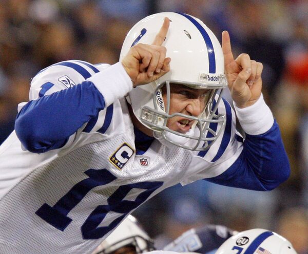 Indianapolis Colts quarterback Peyton Manning (18) calls a play against the Tennessee Titans in the first quarter of an NFL football game in Nashville, Tenn.,Bill Waugh/The Associated Press