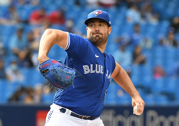 Blue Jays starting pitcher Robbie Ray struck out 13 and issued no walks in seven innings against the Rays at the Rogers Centre.Dan Hamilton/USA TODAY Sports via Reuters