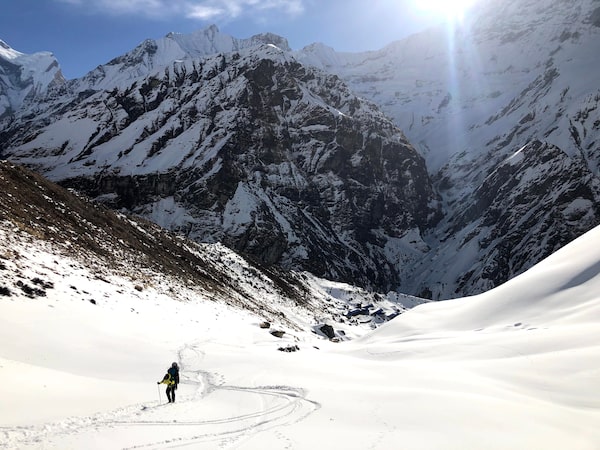 Jill Wheatley, seen here back-country skiing in the Himalayas in April, 2020, was at 4,500 metres altitude when Nepal enforced its shelter-in-place order in response to the COVID-19 pandemic.Courtesy of family