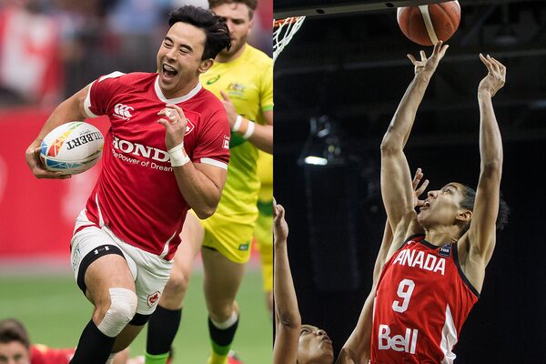 Nathan Hirayama at the Canada Sevens rugby tournament in Vancouver and Miranda Ayim at the FIBA Women's Olympic Pre Qualifying Tournaments Americas 2019, in Edmonton.The Canadian Press