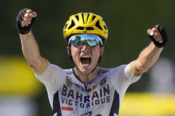 The Bahrain-Victorious rider immediately dedicated his win to former teammate and friend Gino Mader, who died last month from injuries suffered in a crash at the Tour de Suisse.