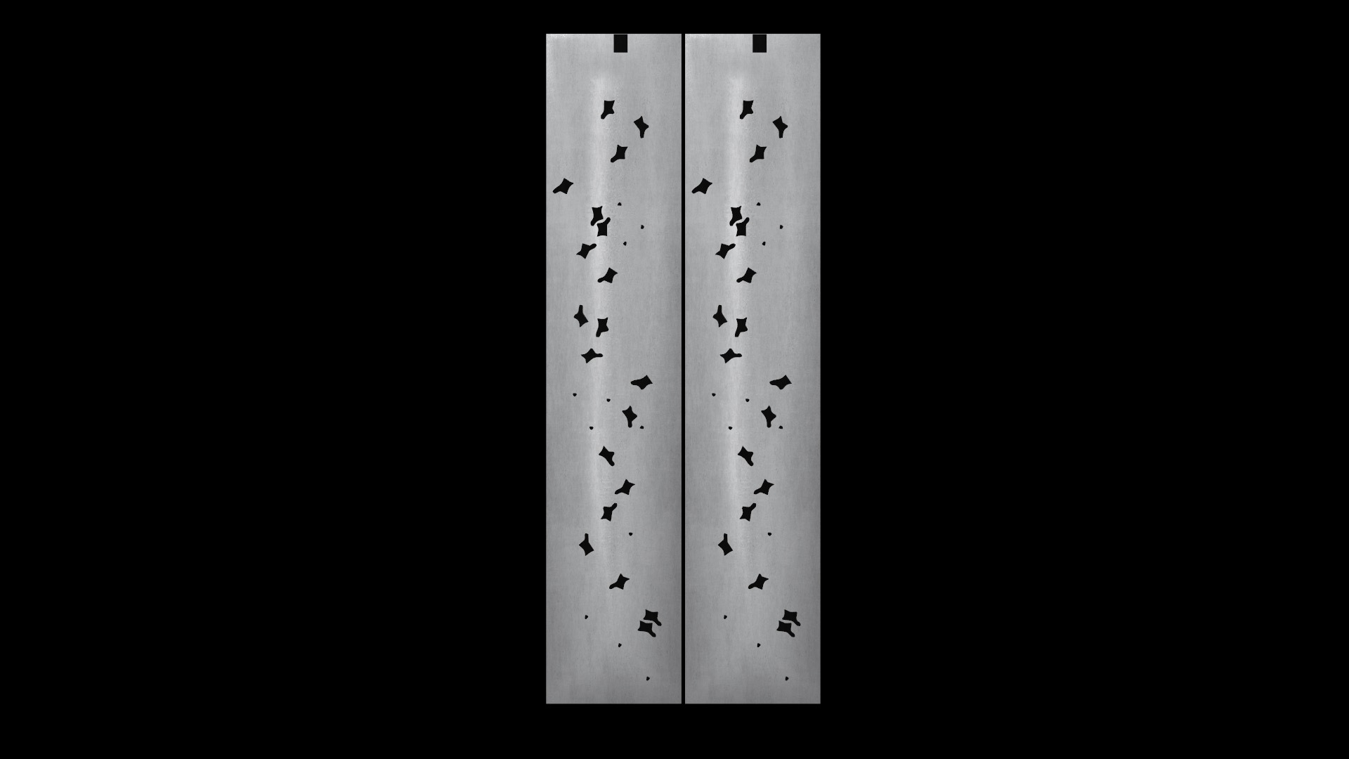 20 hand holds and 11 foot holds over 4 ½ storeys with an overhang of five degrees. There are no rules for what you must grab or stand on but the use of hand holds counts towards a sequence.