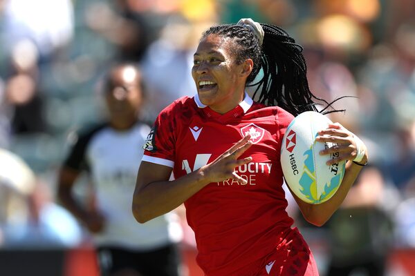Asia Hogan-Rochester of Canada runs in for a try the 2024 Perth SVNS women's match between Fiji and Canada at HBF Park on Jan. 28 in Perth, Australia.Paul Kane/Getty Images
