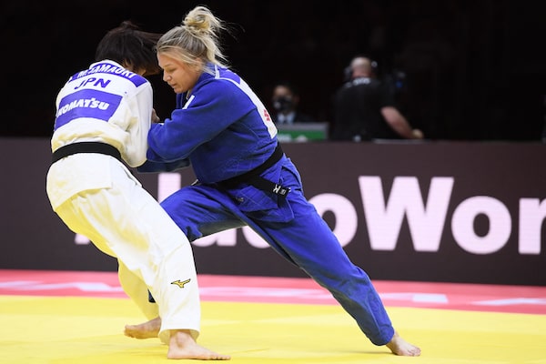 Canada’s Christa Deguchi lost in the bronze-medal match. She won gold at the worlds in 2019.