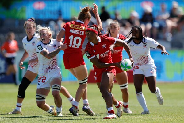Olivia Apps and Fancy Bermudez scored late tries for Canada after the Americans built a 21-0 lead. Apps, Krissy Scurfield, Alysha Corrigan, Charity Williams, Asia Hogan-Rochester and Shalaya Valenzuela scored Canada’s tries against South Africa.