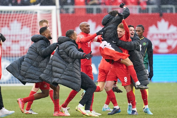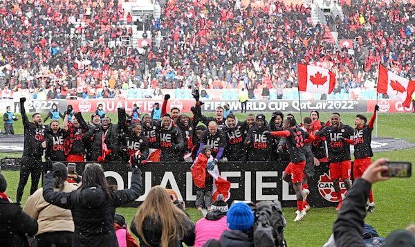 Fans celebrate the win that will send Canada to the World Cup for the first time in 36 years.Melissa Tait/The Globe and Mail