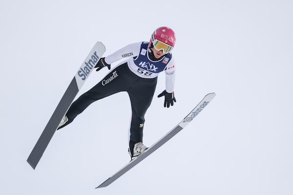 Canada's Abigail Strate competes in the first round of the women's World Cup ski jumping in Lillehammer, Norway on Saturday.Geir Olsen/The Associated Press