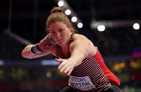 Sarah Mitton competes during the Women's Shot Putt at the World Athletics Indoor Championships Belgrade 2022 on March 18, 2022 in Belgrade, Serbia. Mitton produced one of the best seasons of her career with the Canadian Track and Field League last season and she will be back competing in the league again for its 2023 season.Maja Hitij/Getty Images