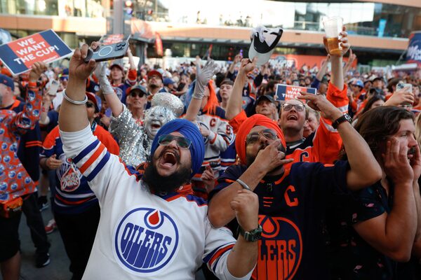 Fans in Edmonton react as the Oilers win game six of the 2024 Stanley Cup Final.Amber Bracken/Reuters