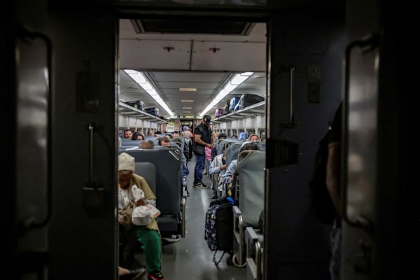 People ride a NJ Transit train at the Secaucus Junction station on the day of the announcement of public transit ticket prizes to World Cup games in New Jersey earlier this month.Jeenah Moon/Reuters