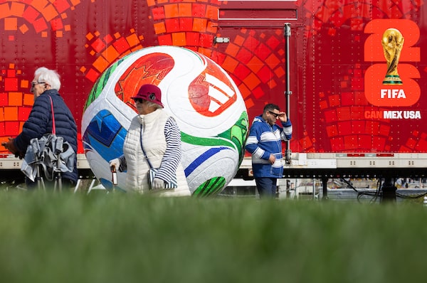 Soccer fans gather to take part in the FIFA World Cup 2026 countdown celebration event in Victoria, B.C., March 31.CHAD HIPOLITO/The Canadian Press