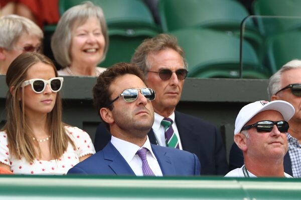 Justin Gimelstob, second from left, watches a match at Wimbledon in July, 2018. Gimelstob is resigning from the ATP board of directors.Matthew Stockman/Getty Images