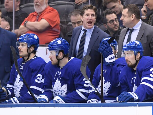 Toronto Maple Leafs coach Mike Babcock yells from the bench during third period NHL hockey action against the Florida Panthers in Toronto on March 25, 2019.Nathan Denette/The Canadian Press