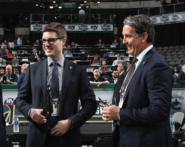 Kyle Dubas, left, and Brendan Shanahan, seen here on June, 2018, have to worry about the big picture and whether the Leafs need help defending and getting the puck moving out of their own end.Bruce Bennett/The Canadian Press