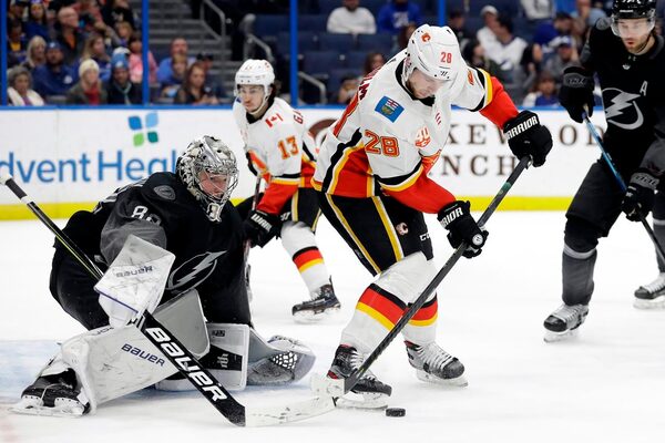 Mangiapane raced in down the left wing side and fired a slap shot that went through Vasilevsiy on the short side at 13:12. Lindholm followed that up with a slap shot from the top of the right circle that grazed the stick of Palat and beat Vasilevskiy.
