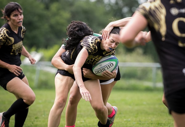 Rachel Kay takes down a Saracen part way through the championship game. Understanding how to tackle and how to be tackled is a major part of playing rugby. While the Guardian Angels are made up of veteran players, they want to train newcomers to play the game safely.Melissa Tait/The Globe and Mail