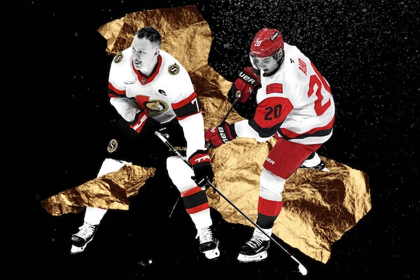 Illustration by The Globe and Mail (Photos: David Kirouac-Imagn Images, Joe Hrycych/Getty Images)