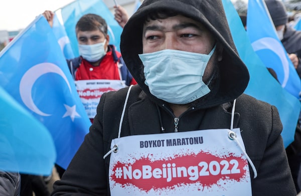 Anti-Olympic protesters from the Uyghur ethnic group rally in Istanbul.Umit Bektas/Reuters