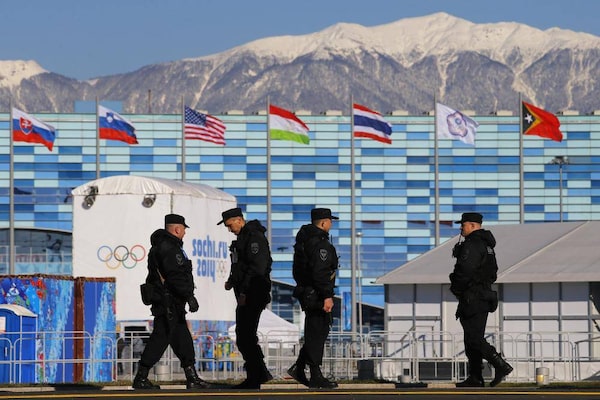 Security guards patrol the Sochi Olympic park in 2014.Brian Snyder/Reuters
