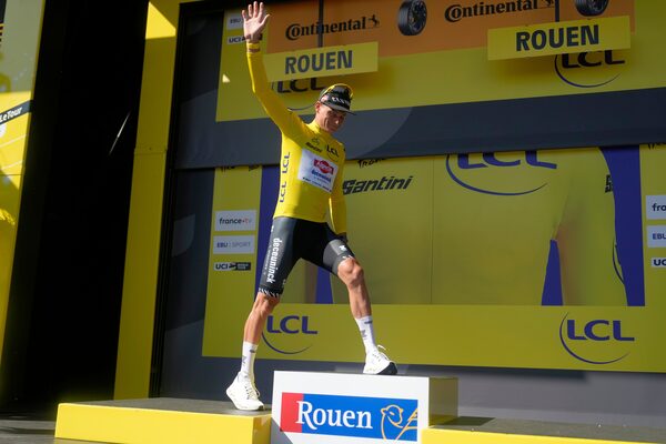 Netherlands' Mathieu van der Poel kept the overall leader's yellow jersey on Tuesday. He and Pogocar have exactly the same overall time of 16 hours, 46 minutes after four stages, and count one stage win each, but Van der Poel kept the yellow jersey because of better finishing positions in the other two stages.Mosa'ab Elshamy)/The Associated Press