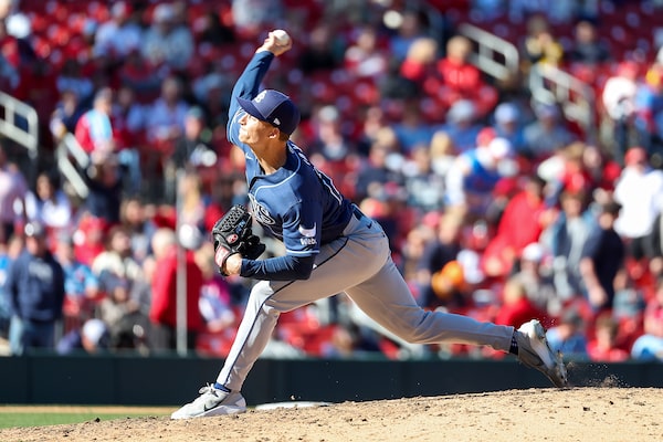 Tampa Bay Rays pitcher Griffin Jax throws during the 10th inning against the St. Louis Cardinals last month in St. Louis.Scott Kane/The Associated Press