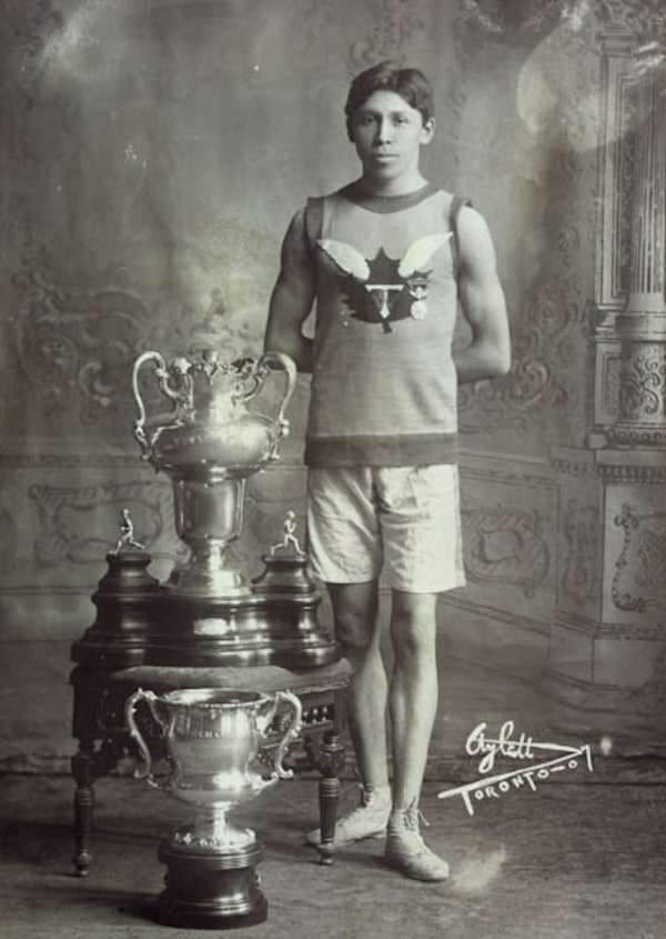 Tom Longboat with trophies in 1907.Charles A. Aylett/Library and Archives Canada