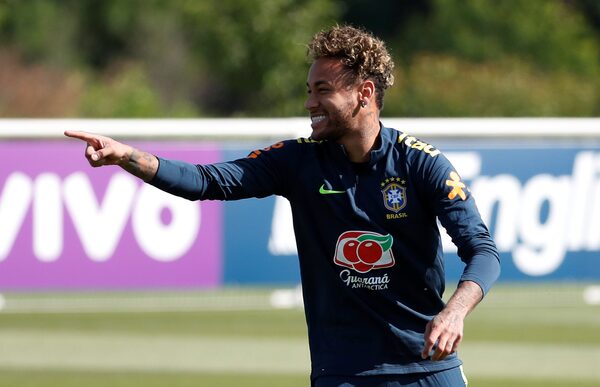 Brazil’s Neymar smiles during training at Tottenham Hotspur Training Ground in London on June 6, 2018.MATTHEW CHILDS/Reuters