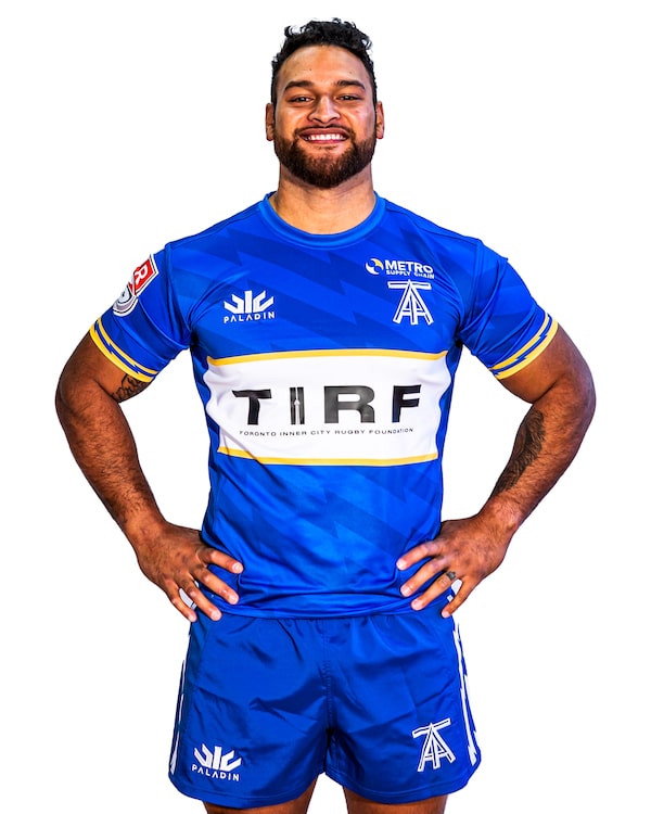 Fabian Goodall of the Toronto Arrows wears the teams jersey with Toronto Inner-City Rugby Foundation (TIRF) logo on it.Supplied
