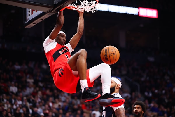 Scottie Barnes (4) led the Raptors in rebounds, steals and blocks and tied for the team lead in assists this season with point guard Immanuel Quickley.Frank Gunn/The Canadian Press