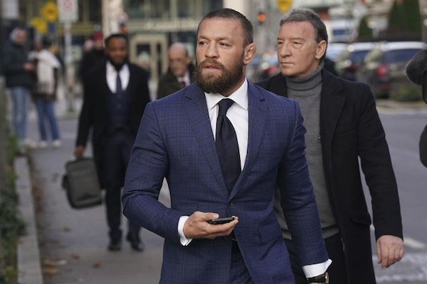 Mixed martial arts fighter Conor McGregor walks outside the High Court, in Dublin, on Nov. 21.Brian Lawless/The Associated Press
