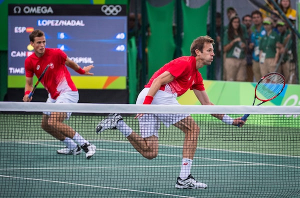 Pospisil and Daniel Nestor represent Canada during the men's doubles semifinals match against Rafael Nadal and Marc Lopez of Spain at the Rio Olympics in 2016.John Lehmann/The Globe and Mail